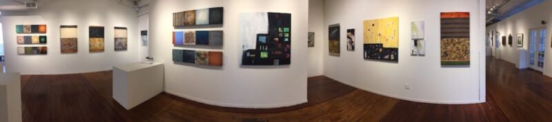 This installation is titled “Haiku Totems.” Each wood panel consists of several small works and original haiku, written by the artist. Many pieces include several continuous haikus (cascading) – all based on our interrelationships to one another, our place in community and the Universe as a whole. This mixed media work is finished with resin. Total area to install 8 totems – approximately 112″ x 60″. Totems were exhibited in their entirety at UUSS in September of 2016.